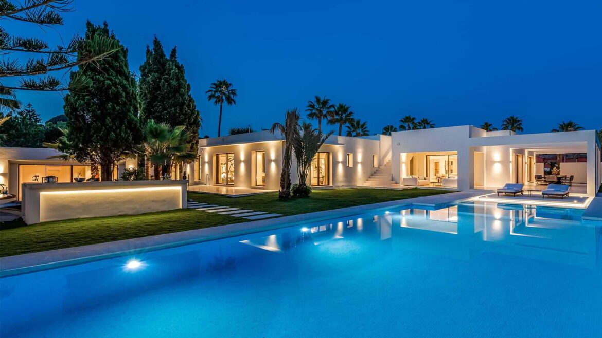 Casa del Mar – a new concept of luxury living by the sea. This stunning contemporary villa is situated just steps from the pristine beach in Marbesa, one of the trendiest beach resorts in Marbella. The villa is set on a large plot and offers a tailor-made living area with a completely new living concept. The home offers a unique architectural design and stylish interiors envisaged to offer a chic, luxury lifestyle by the sea. The single-level villa has been built with minute attention to