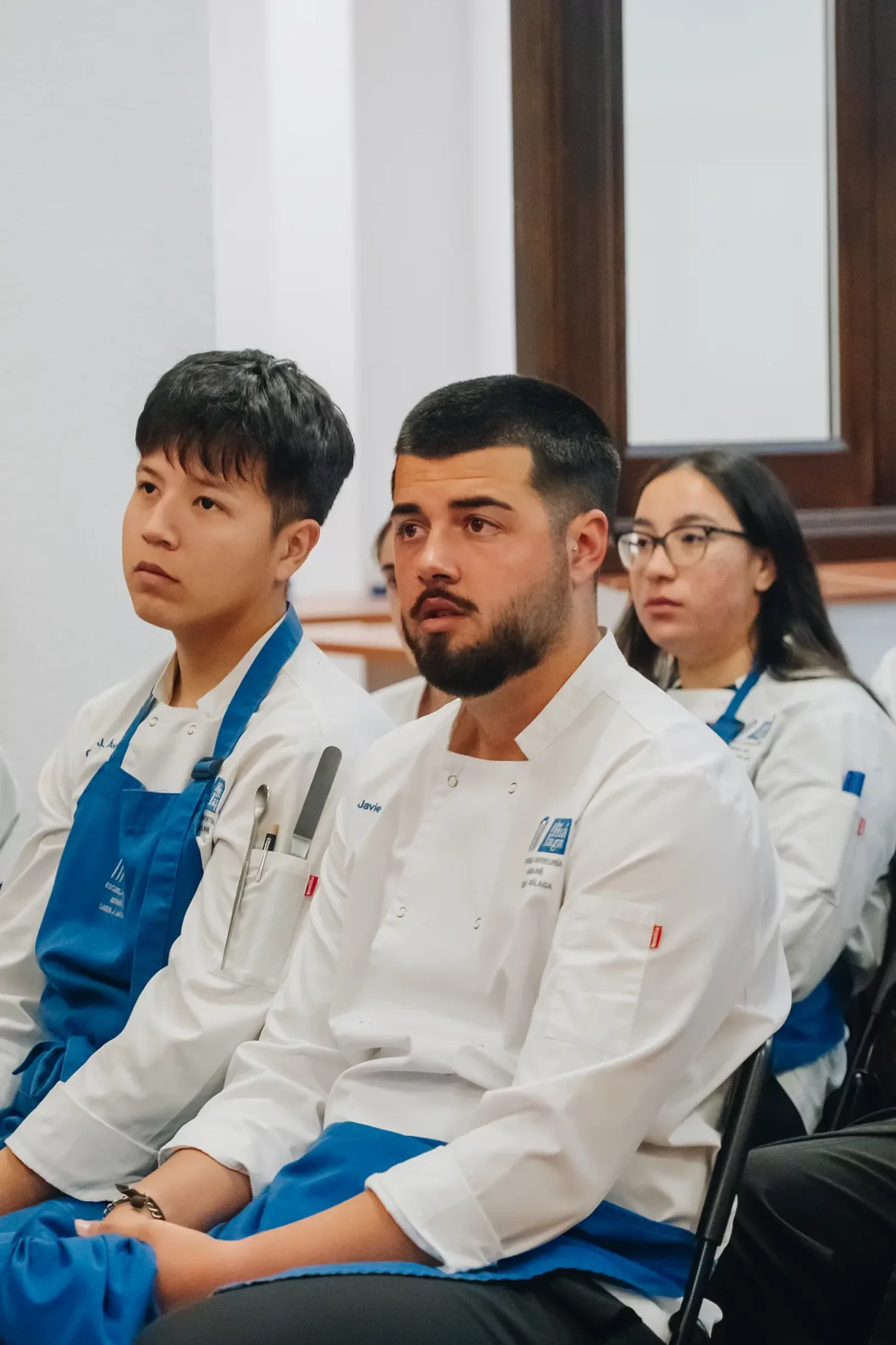 Los chefs Mario Cachinero (Skina**), José Carlos García (José Carlos García Restaurante*), Mauricio Giovanini (Messina*), David Olivas (Back*), junto a la jefa de sala y sumiller Pía Ninci (Messina*), compartieron sus experiencias profesionales con los alumnos, motivando a los futuros talentos de la gastronomía.