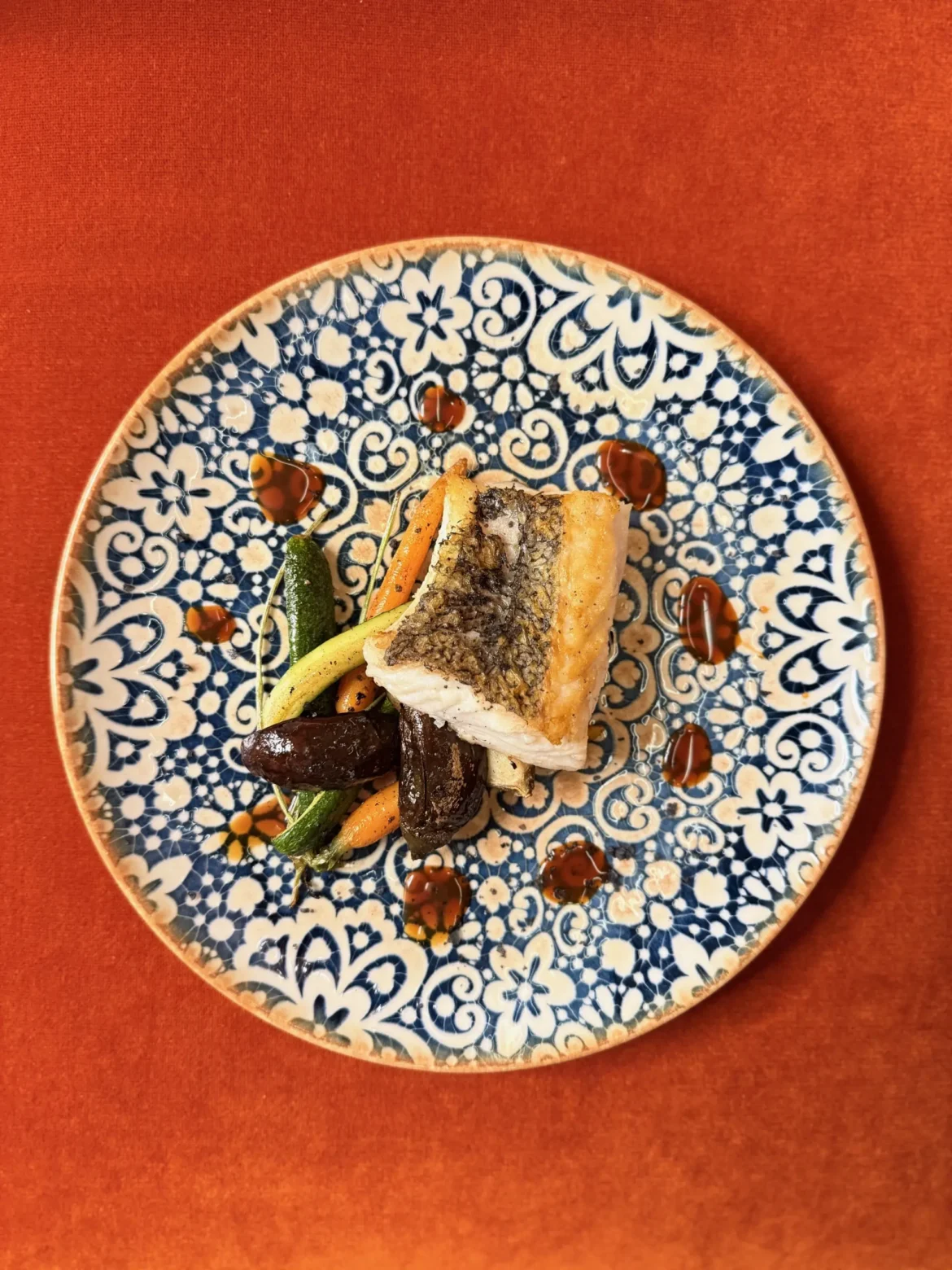 Taco de merluza al horno con verduritas baby salteadas en wok.